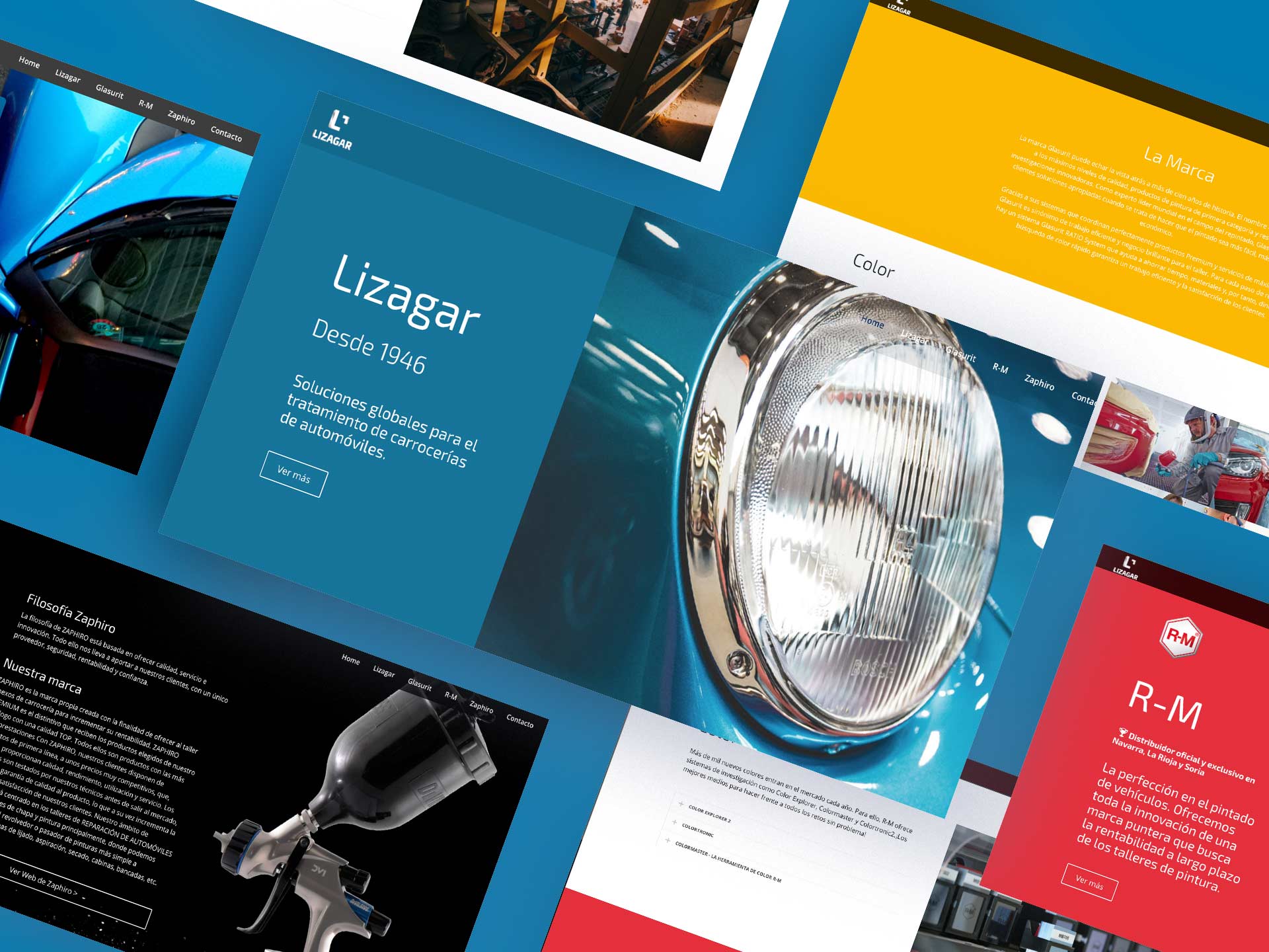 Diseño web para Lizagar un negocio de respuestos de automovil, pero especializados en ofrecer a sus clientes una amplia gama de servicios y productos relazionados con la pintura para carrocerías. Este elemento diferenciador nos sirvio como punto de partida para explotar al máximo una de sus fortalezas como empresa.